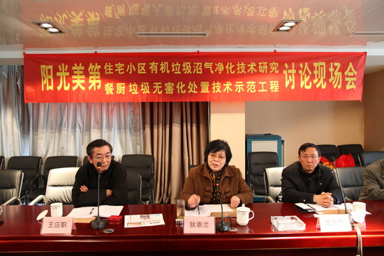 2010年12月24日上午,在扬州阳光美第小区召开了住宅小区有机垃圾沼气净化技术研究;和 阳光美第小区餐厨垃圾无害化处置技术示范工程;现场研讨会。