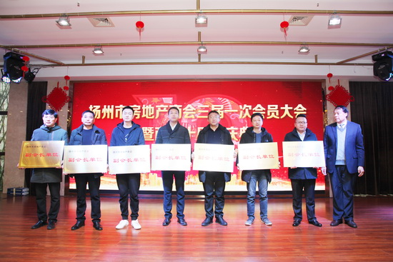 1月3日,扬州市房地产商会三届一次会员大会暨商会成立十周年庆典在豪第坊.扬州院子举行,扬州市人大常委会副主任杨正福、扬州市政协副主席董玉海及扬州市和仪征市的相关领导,省、市工商联负责人,扬州市房地产商会的会员单位代表济济一堂,进行换届选举,为商会的发展掀开了新的一页。